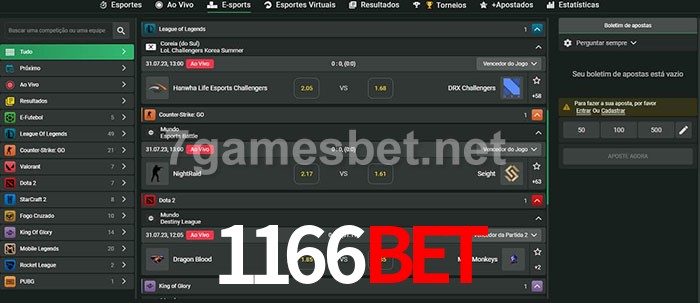 O 1166Bet oferece uma grande seleção de opções de apostas em e-sports com probabilidades competitivas